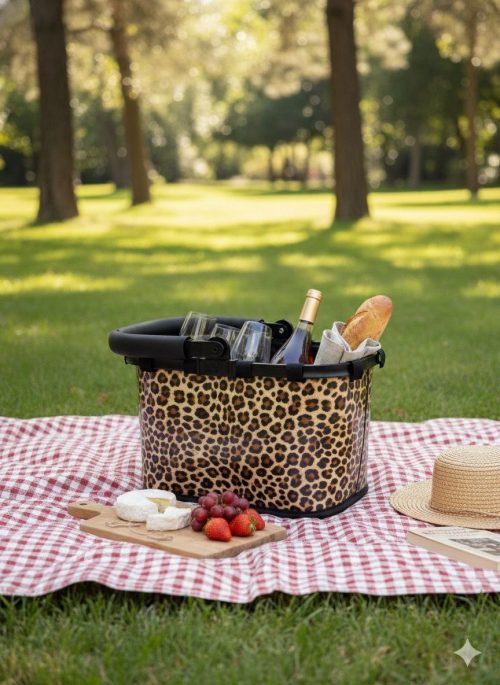 سبد پیک نیک چرمی برزنتی وارداتی طرح پلنگی