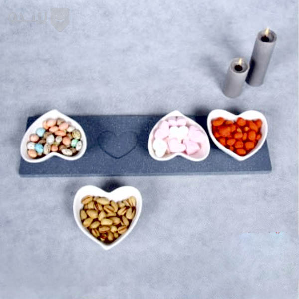 اردو خوری ۴ پیاله خطی قلبی سرامیکی زیر چوب