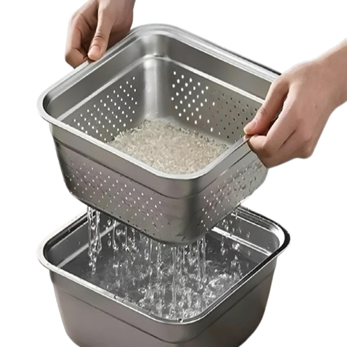 آبکش و لگن استیل مدل مربع سایز ۲۴