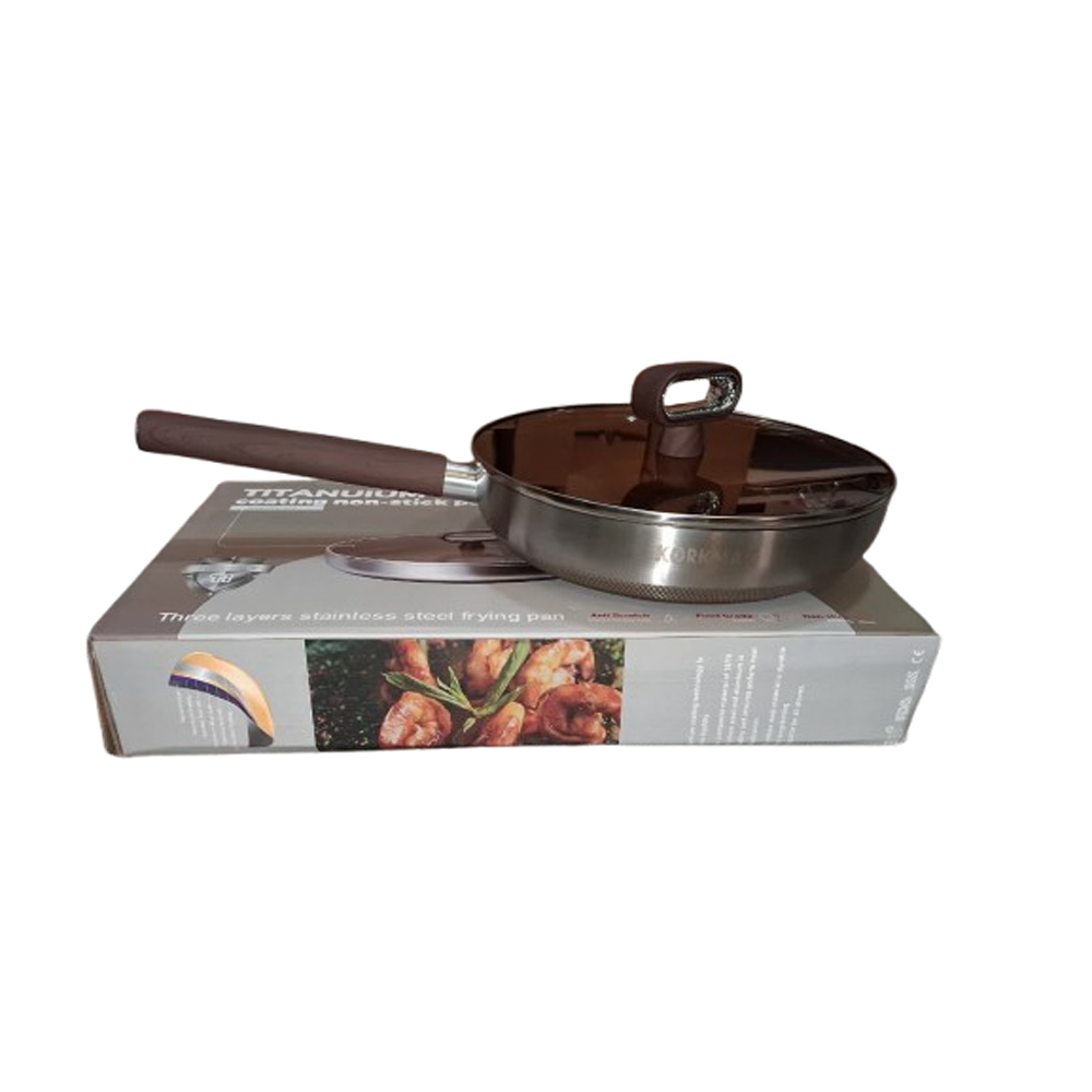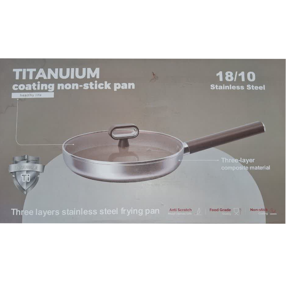 تابه وک استیل درب دار کف لیزری مدل تیتانیوم سایز 28